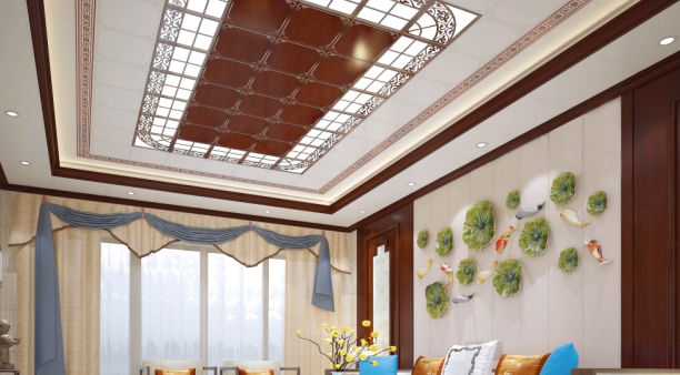 這個(gè)客廳是中國(guó)傳統(tǒng)風(fēng)格和現(xiàn)代風(fēng)的融合,保留了中式風(fēng)格的精髓,與現(xiàn)代潮流的碰撞創(chuàng)新,加入集成吊頂,演繹另一番美妙。
