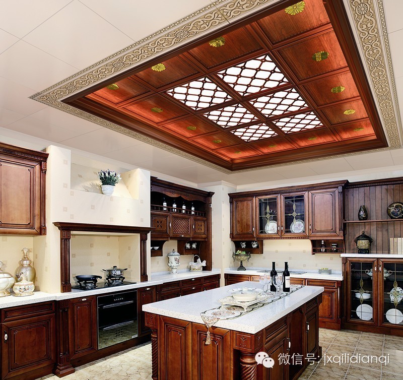 廚房是一個非常重要的地方,有一個干凈、整潔、舒適的環境,東西擺放有序,灶臺干干凈凈。以創造一個好環境,營造一份好心情,做出一桌色香味俱全的好美味那是不在話下了。長方形廚房戶型,白色的菱形吊頂,配上方塊顏色各異的墻磚,白色的櫥柜更加增添了美式家居的感覺。這樣的廚房,能讓廚師的心情愉悅,讓飯菜更加美味。