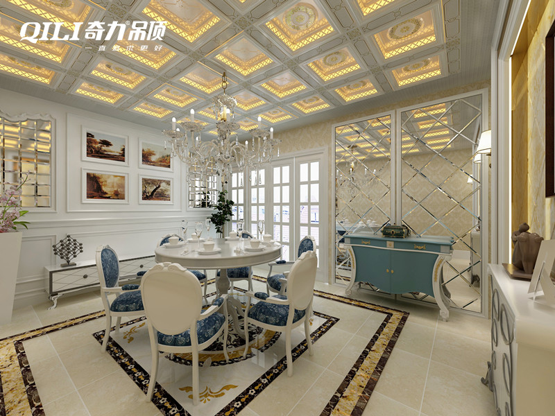 靈活性是餐廳這個空間的一個主要特點,可以使用懸掛造型吊燈來下壓空間,增加餐廳情趣,或選擇用燭光來渲染空間。