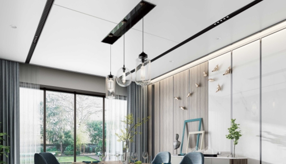 不妨從頂部空間入手,在不影響層高的前提下,以集成吊頂劃分功能空間,創(chuàng)造出視覺(jué)上的層次感,增加居室立體感。