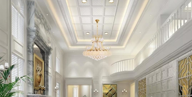 挑高客廳的空間大,如果頂部裝飾少,會(huì)顯得很空洞。可以在頂部裝上集成吊頂,來(lái)彰顯你的品味。注意在選擇集成吊頂?shù)臅r(shí)候要和家中的整體風(fēng)格進(jìn)行匹配。